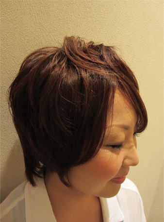 トップをふんわりさせて、えりあしをすっきりさせます。